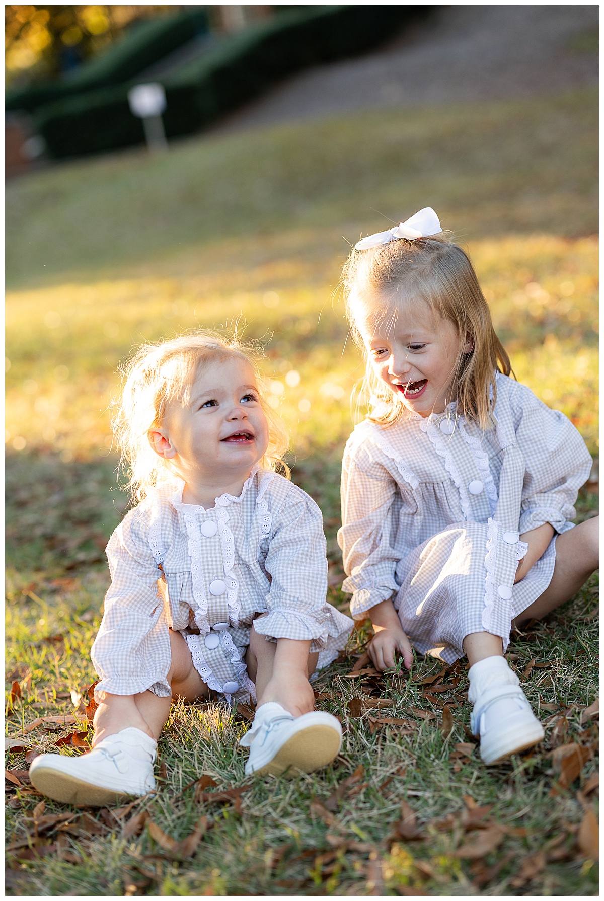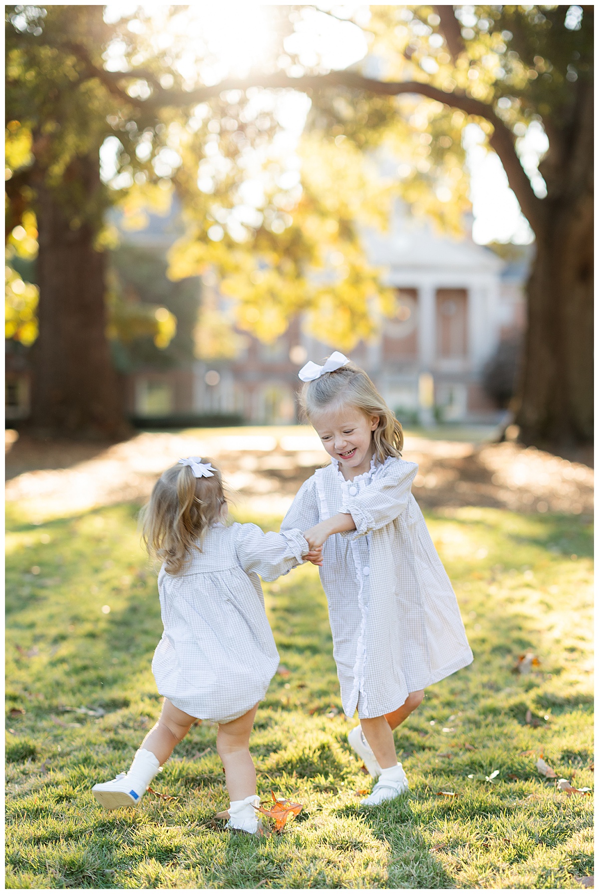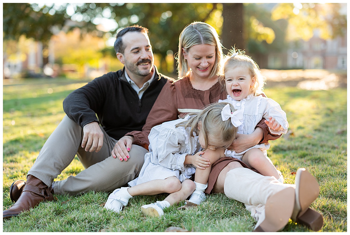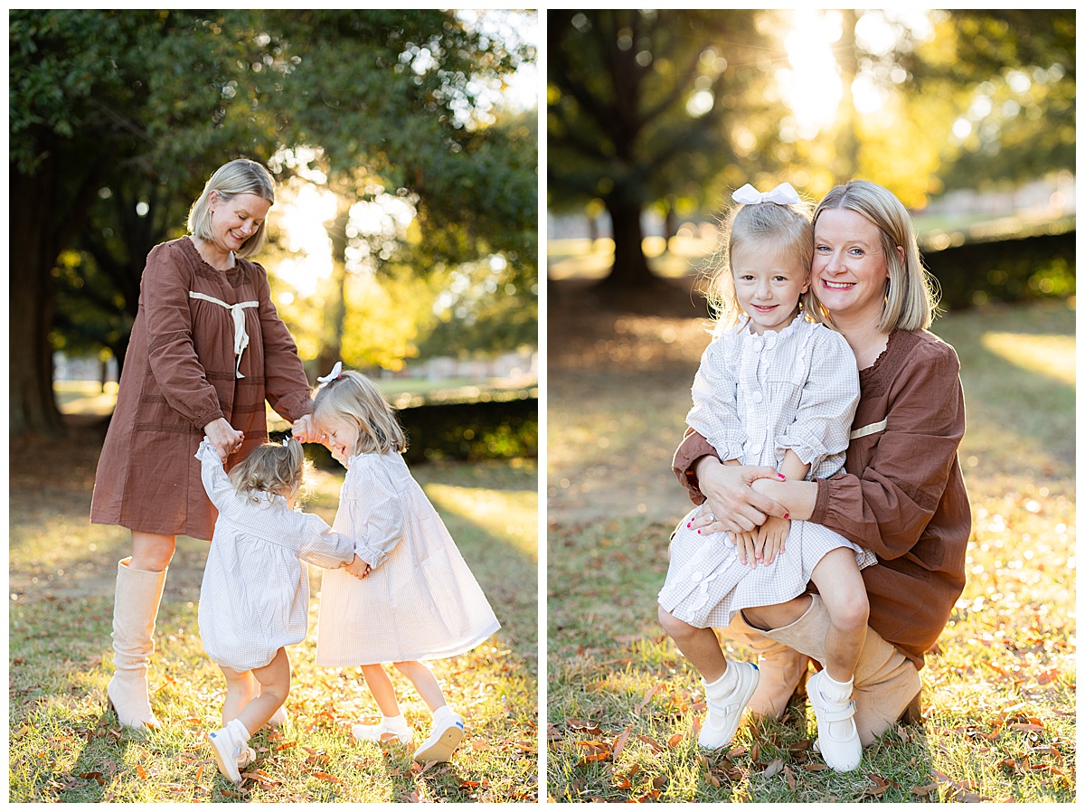 Once they got comfortable, it was game on with giggles, twirls, and the best kind of chaos! The whole family wore autumn-inspired outfits, with the two girls in most adorable matching gingham outfits! I love how easygoing this family is. They truly enjoy being together, and it always shows in their photos.