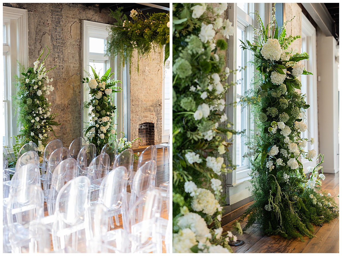 Cole with CB Design completely transformed The Cordelle into a lush green wonderland, and Mayker Events brought everything together with beautiful soft seating that made the space feel inviting and cozy.