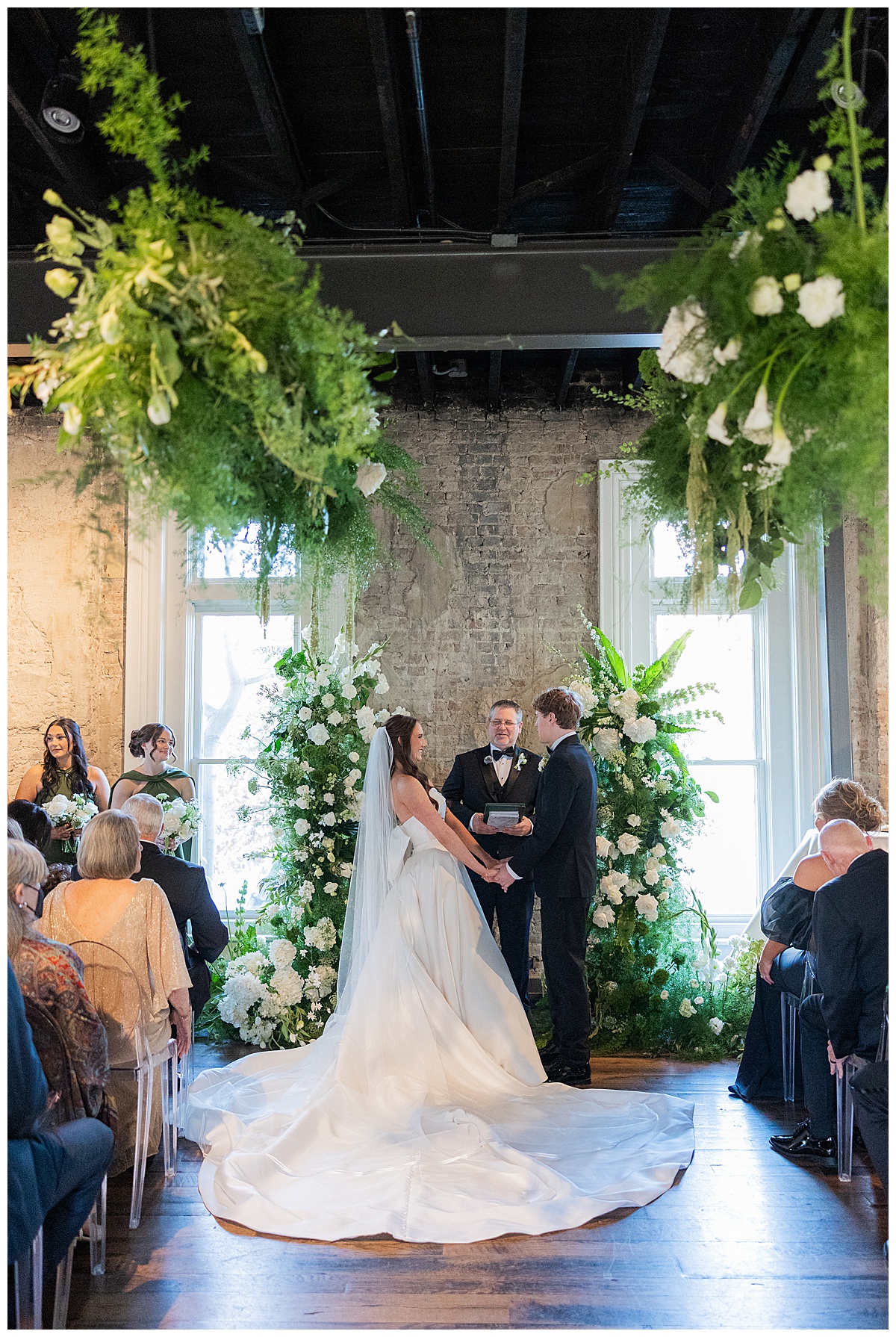 Camden and Olivia chose not to see each other until the ceremony, and the anticipation made that moment incredibly powerful. As Olivia walked down the aisle, her overskirt trailed gracefully behind her, adding so much drama and elegance as they met at the altar. The emotion in the room was palpable, full of wonder, excitement, and so much love.
