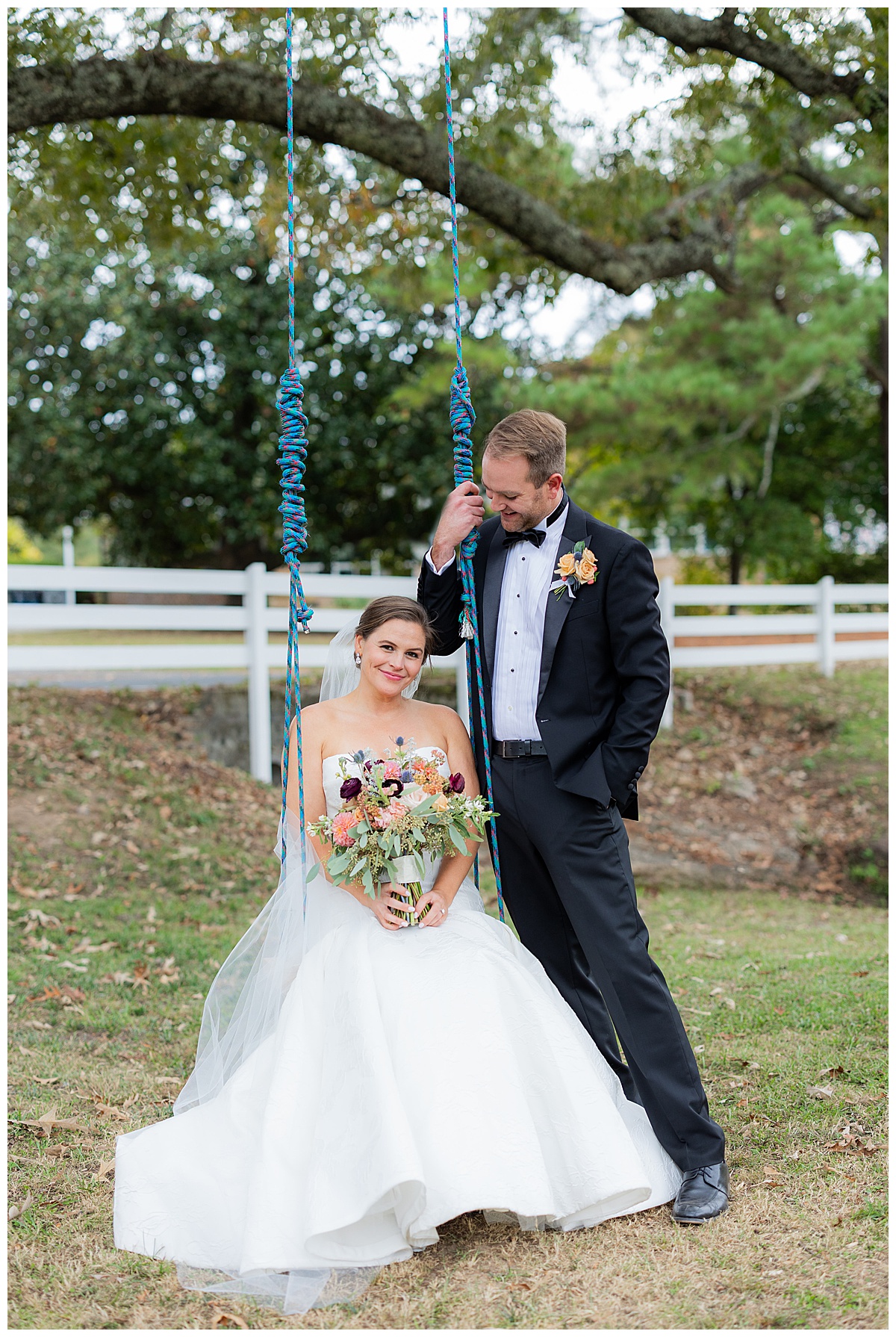 Since she manages Oris & Oak, Elizabeth knew exactly which spots she wanted to highlight on her wedding day. Before the big day, we met up for a little walk-through so she could show me all her favorites: the massive oak tree, the swing Alex put up by himself at midnight, the cozy bridal cottage where they spent so many of their dating days, the open-air pavilion for cocktail hour, and the barn she completely transformed for the reception. Every corner of the property felt personal, thoughtful, and full of their story.