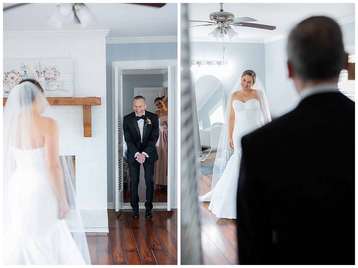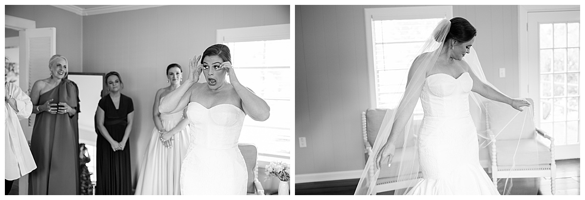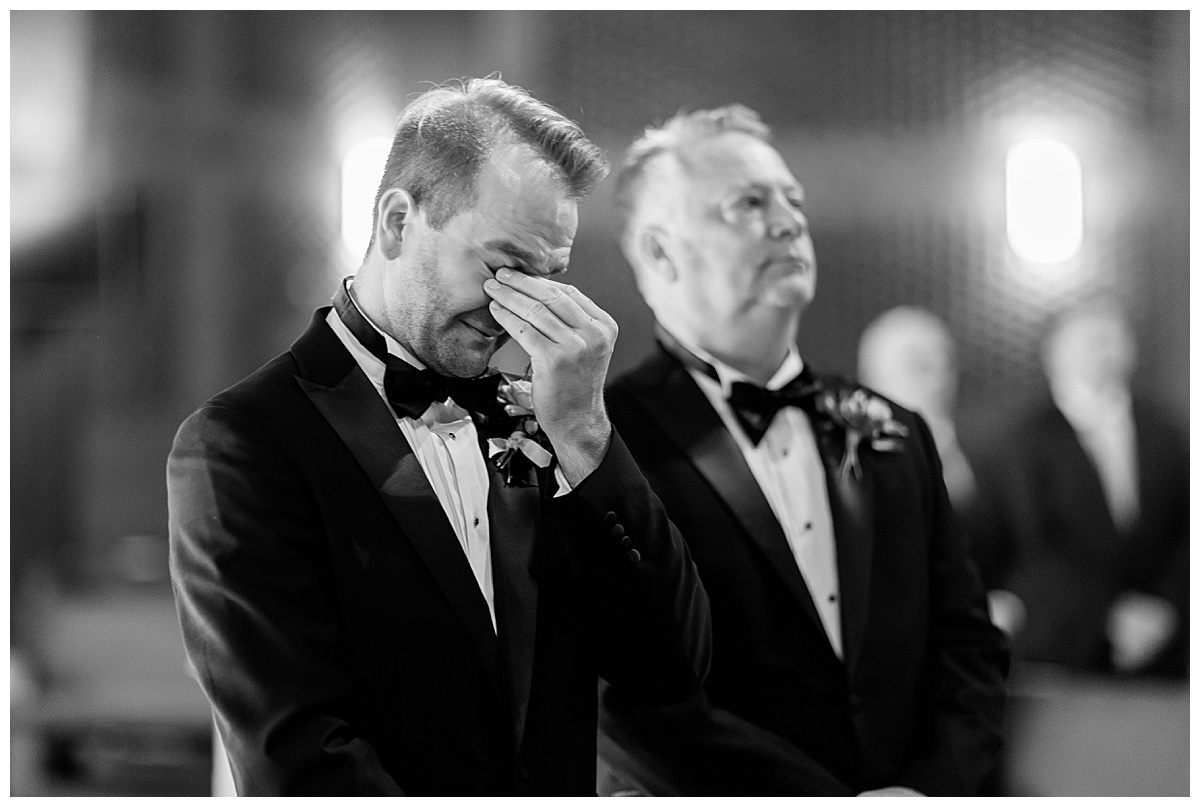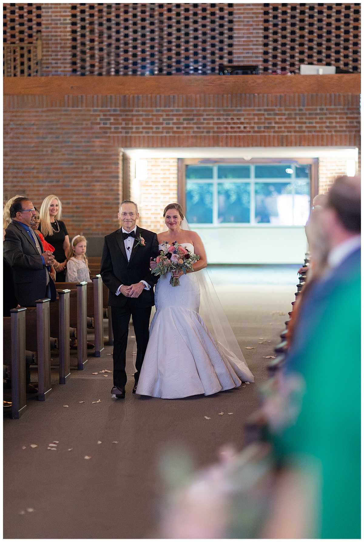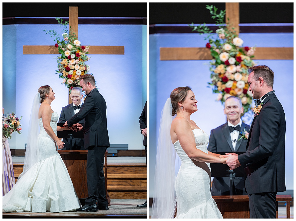 Elizabeth got her dress from Bustle in Homewood, and it was so perfect for her. The gown was elegant, timeless, and beautifully classic. She looked radiant walking down the aisle at Homewood Church of Christ, and Alex’s reaction said it all.