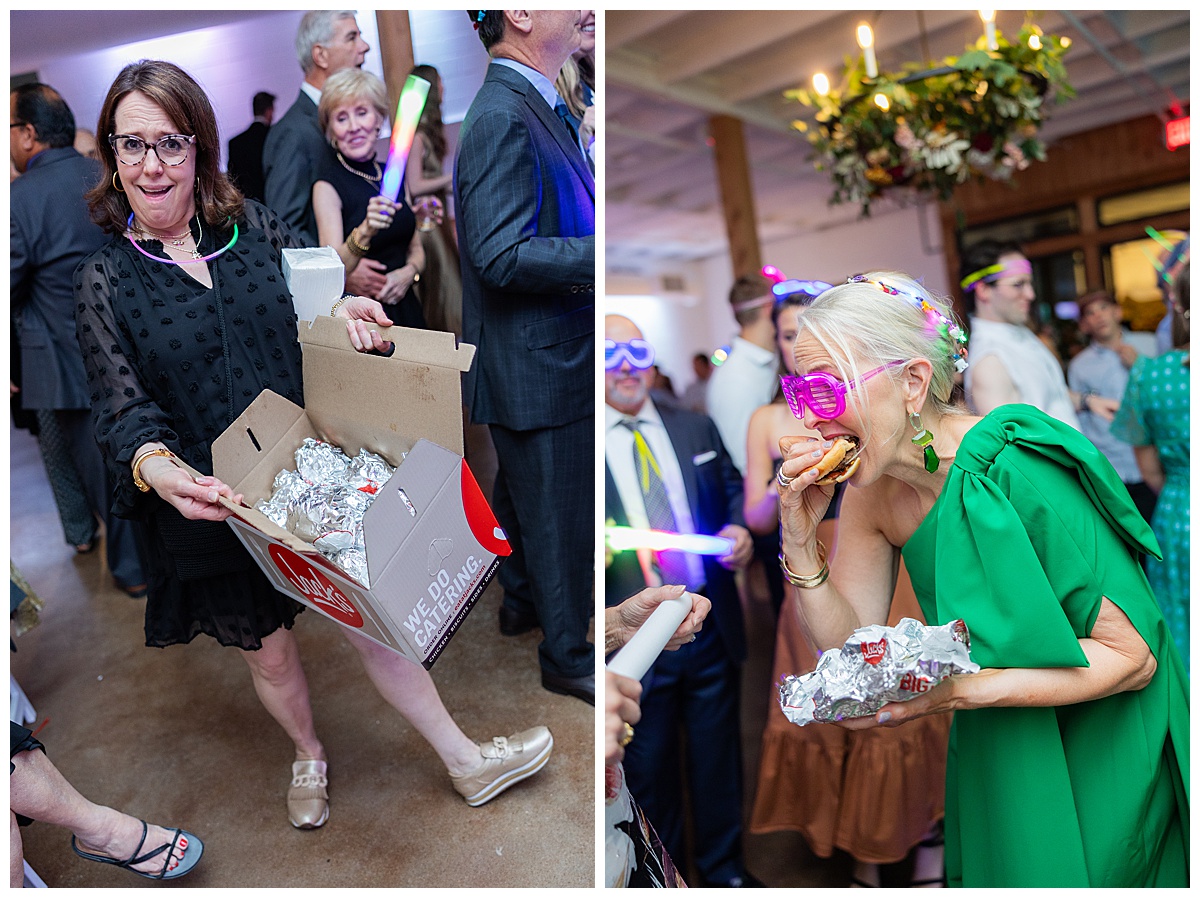 Once the sun set and the party started, the reception was an absolute blast. Emerald Empire Band kept everyone on their feet all night long. They always bring such a fun energy, and this night was no exception! Guests danced, sang along, and celebrated the new Mr. and Mrs. Henderson with so much joy. Their cake was five tiers tall (and every bit as delicious as it looked!), and as a late-night snack, they passed around Jack’s hamburgers, the perfect Alabama touch to end a perfect day.