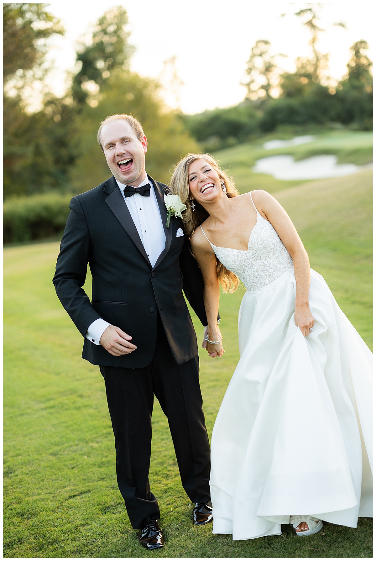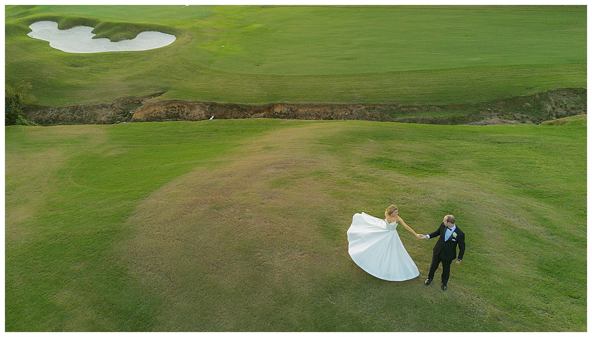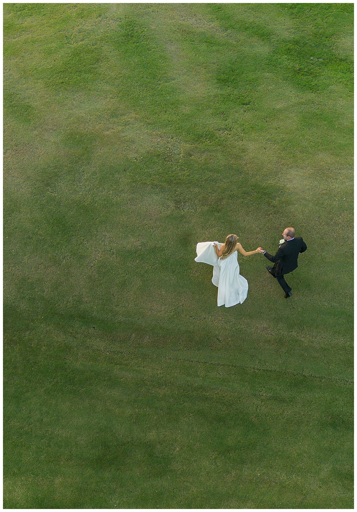 Then, it was back to Pine Tree for Rebecca’s dress and hair change! She and David were eager to greet and hug all their people, so they popped into cocktail hour for a bit before we jumped into golf carts for sunset portraits. I sent the drone into the sky and absolutely love the results. These were some of my favorite minutes from the day: laughing, dancing, and breathing easy again after all the nerves had faded!