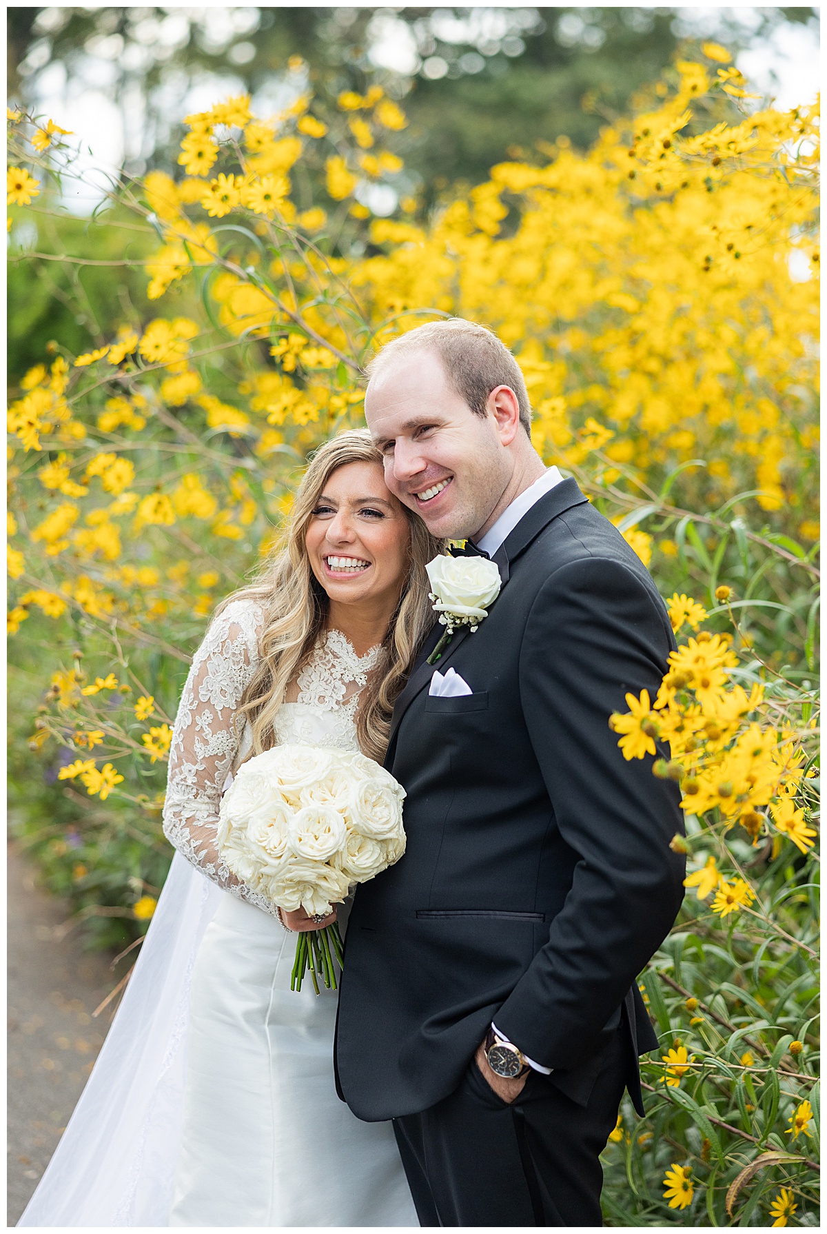 After their beautiful ceremony, we had a two-hour window before cocktail hour began back at Pine Tree Country Club, which meant bonus portrait time! We drove first to Crest Road, where the most vibrant yellow flowers were blooming!