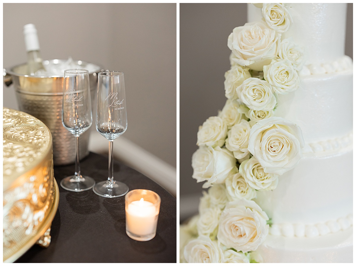 Rebecca and David’s wedding day began just as the sun was beginning to rise. Rebecca and her girls gathered at Pine Tree Country Club, where the reception would later be held, starting hair and makeup at 6:30am with the incredible Natalie Moore. When I arrived, everyone was in the best spirits, chatting and laughing while looking absolutely stunning. I slipped away to photograph Rebecca’s details while sitting on the floor of the reception space, watching Lori Beasley with Delta Flowers (and her sweet son!) snip over 200 roses for the bud vases. The day before, Rebecca, David, their families, and their coordinator, Carli Jo with Threefold Events, spent more than eight hours transforming the entire reception setup. This included placing over 500 candles throughout the tables. Whew!